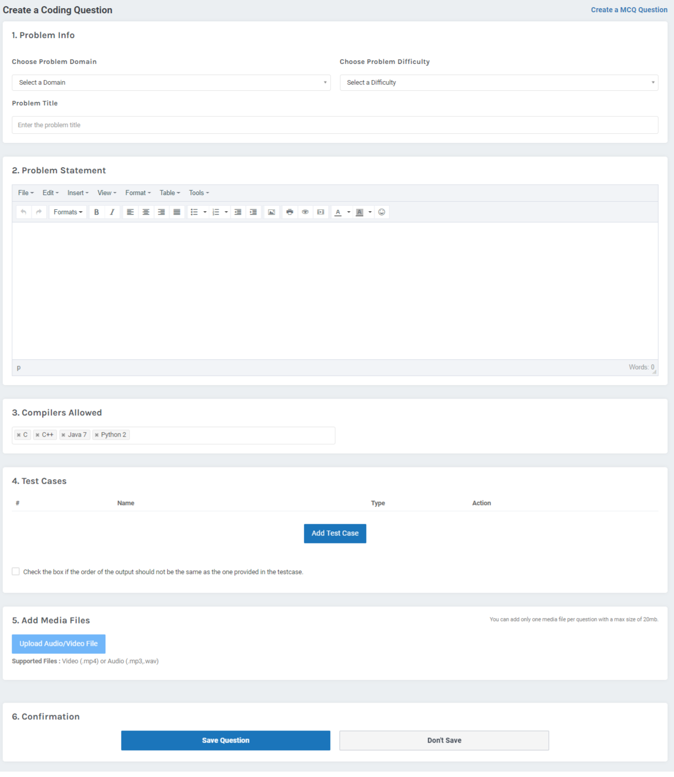 Xobin assessment software allows recruiters to custom build an assessment by adding their own Coding questions.